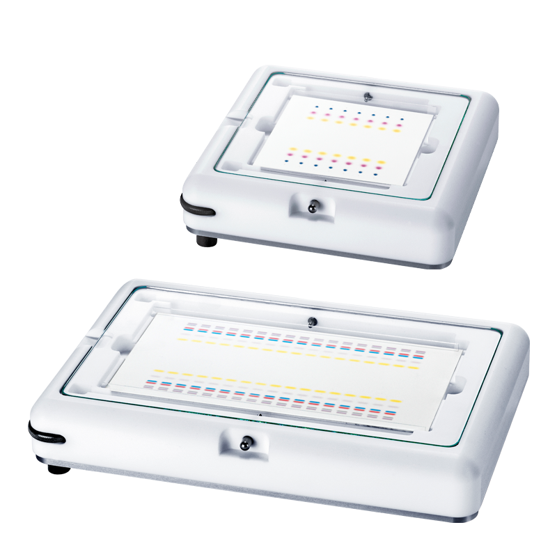 In the Horizontal Developing Chambers, plates can be developed in sandwich as well as in unsaturated and saturated chamber configuration. The chamber is suitable for all kinds of solvents.